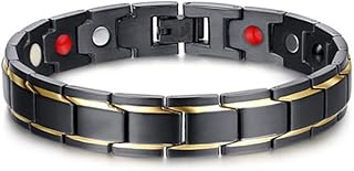 Bracelet magnétique homme, CNNIK Bracelet de magnétique en acier au titane avec 4 puissants aimants, noir doré