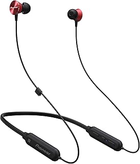 Pioneer C4 Ecouteurs intra-auriculaires sans fil avec Bluetooth (écouteurs de haute qualité, lecture 6 heures, kit mains libres, commande vocale, télécommande, App), Rouge