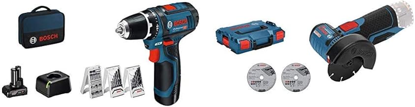 Bosch Professional Perceuse visseuse Sans Fil GSR 12V-15 & 12V System Meuleuse Angulaire sans-fil GWS 12V-76 (3 Disques à Tronçonner, Diamètre de Disque : 76 mm, sans Batteries ni Chargeur) Bleu
