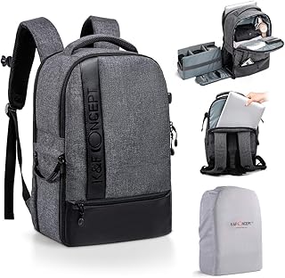 K&F Concept Sac à Dos Appareil Photo Sac DSLR Sac de Voyage pour Ordinateur 15' avec Housse Imperméable Inclus pour DSLR Nikon Sony Olympus