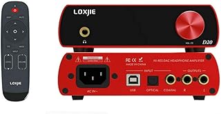 LOXJIE D20 Audio DAC Desktop Amplis pour Casques Convertisseur numérique-analogique et Puce pour amplificateur de Casque Support AK4497 Affichage 32bit/768kHz DSD512 OLED (Rouge)