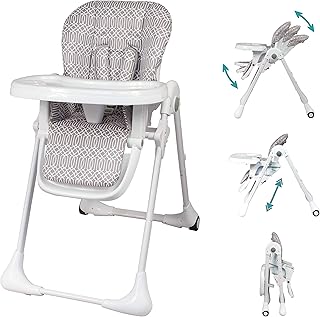 Chaise Haute Bebe Compacte, Reglable et Pliable - Chaise Haute pour Bebe Enfant à Tablette Amovible sans BPA, Chaise Bebe Design Coussin Bébé Confort - Chaise Haute Bébé Harnais 5 Attaches
